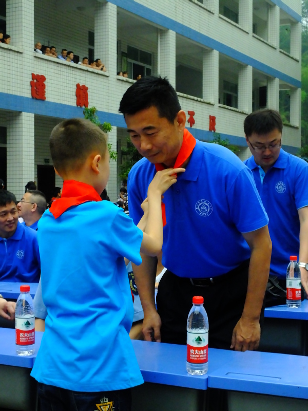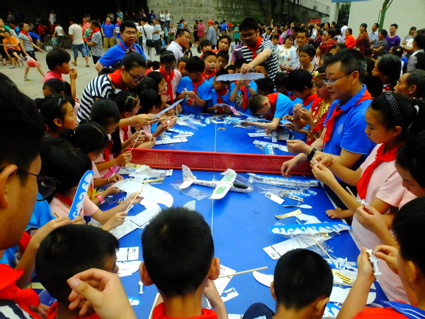 四川校友会戴亚隆会长发表了讲话,他希望同学们认真学习,鼓励同学们报考南航,将来报效祖国、造福家乡。试飞英雄李中华校友也来到了活动现场,并作了“我爱祖国的蓝天”主题演讲。四川校友会将募集的物资赠送给在校师生,为优秀学生颁发了奖状及奖学金,并指导学生们制作航模进行飞行表演。同学们为四川校友们表演了歌舞表示欢迎与感谢。