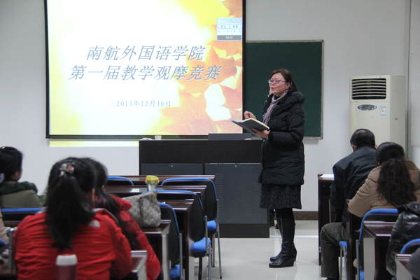 长久以来,如何使这块敲门砖叩响有力是南航外语人一直不懈的追求。为此,多年来外国语学院的教学改革一直在路上。大学外语教学部团队就是这样一群深化教改的排头兵,一大批有激情、敢创新的中青年骨干教师在学院的带领下投入到了一轮又一轮深化外语教学模式改革的大潮中,他们授业解惑,也被学生感佩终身。2015年,我校自动化学院教师刘海春获首届全国高等学校青年教师电工学课程教学竞赛特等奖。他曾这样形容教授过他大学英语的戴树萱老师:“戴老师极富亲和力、启发性的教学,对世事哲理的精彩阐释,对学生的人文关怀,以及她那温柔而不失坚毅的眼神,无时无刻不感染着我们。她个子娇小,周身却散发出一股温暖的气息。”也正是在戴老师的影响下,刘海春老师形成了自己的教学风格,成为如她一样具有“人文情怀”的“工科老师”。