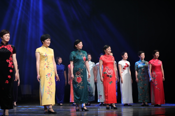 《水韵江南旗袍秀》27位演员亮相,把演出推向高潮。参演旗袍秀的老师都是来自工会形体培训班的学员,她们当中有女教授、女干部,还有不少一线教师和管理人员。她们在繁忙的工作之余,每周挤出一晚上的时间,在专业老师的带领下,仅学习了一个学期,大家就出现不同程度的变化,越来越端庄、优雅。