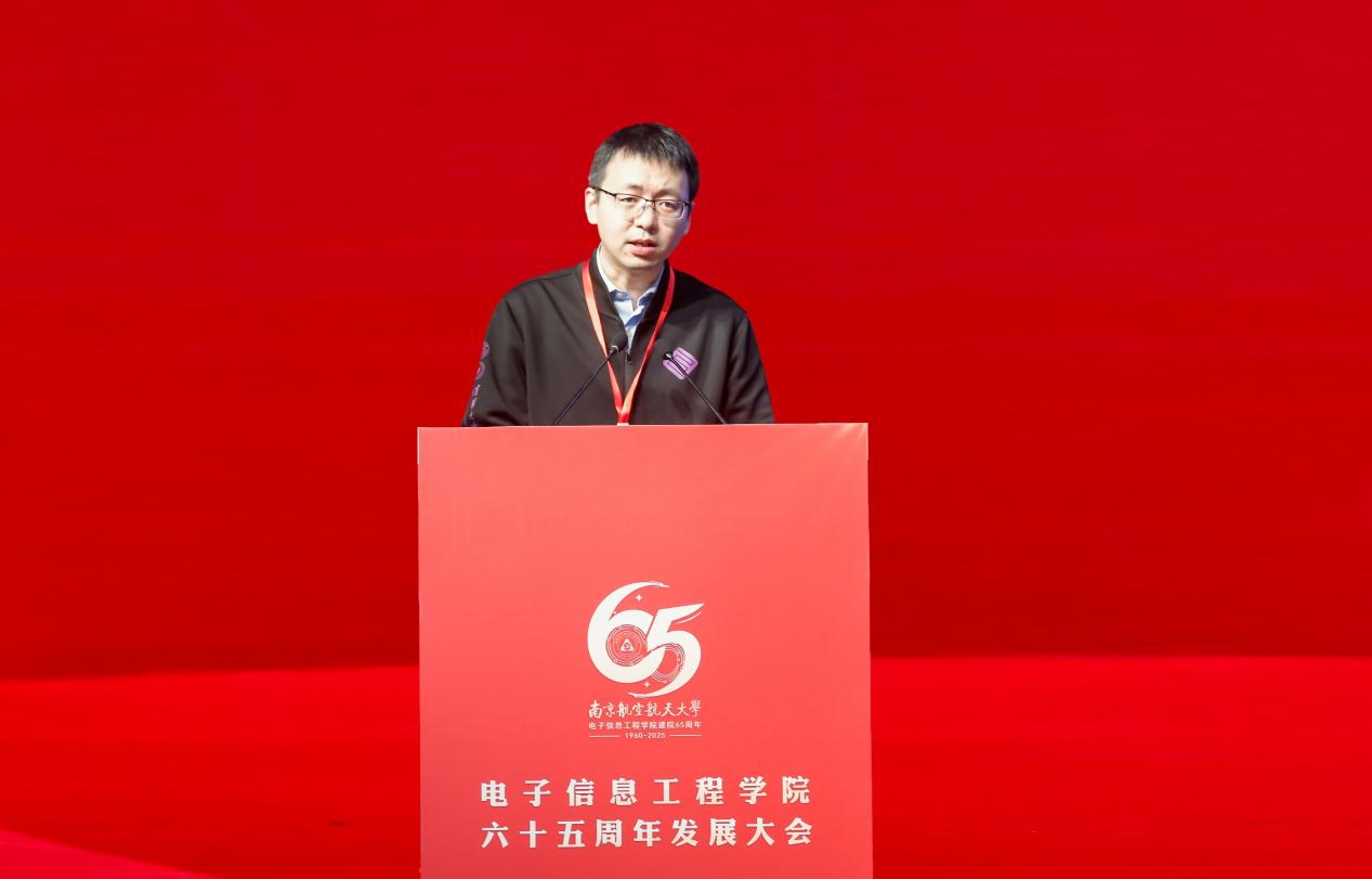 清华大学电子工程系党委书记沈渊作为兄弟院校代表致辞。他对学院65华诞表示热烈祝贺和衷心祝愿,他表示,近年来学院在雷达成像、电磁频谱、卫星通信、微波光子等前沿领域取得了突出成就,期待两学院未来在学科建设、科学研究、人才培养等方面持续开展深度合作,为推动科技进步和社会发展携手做出新的更大贡献。