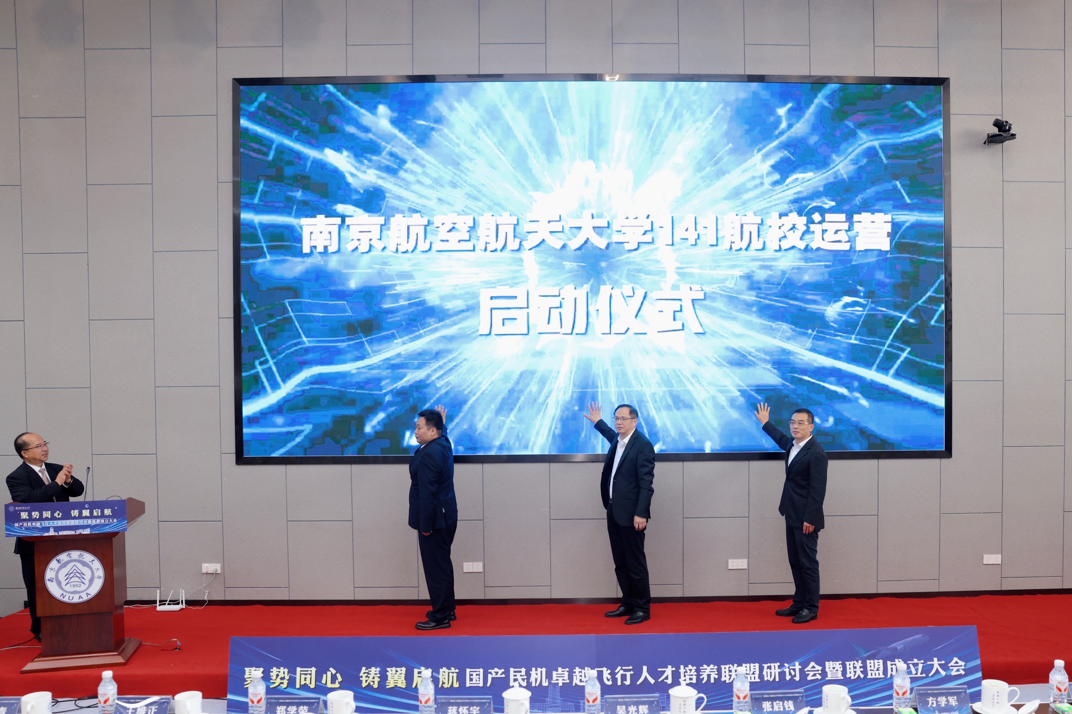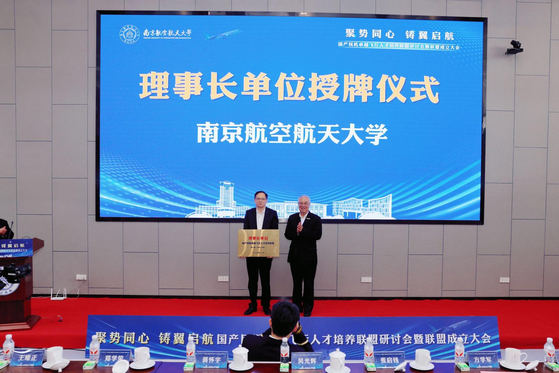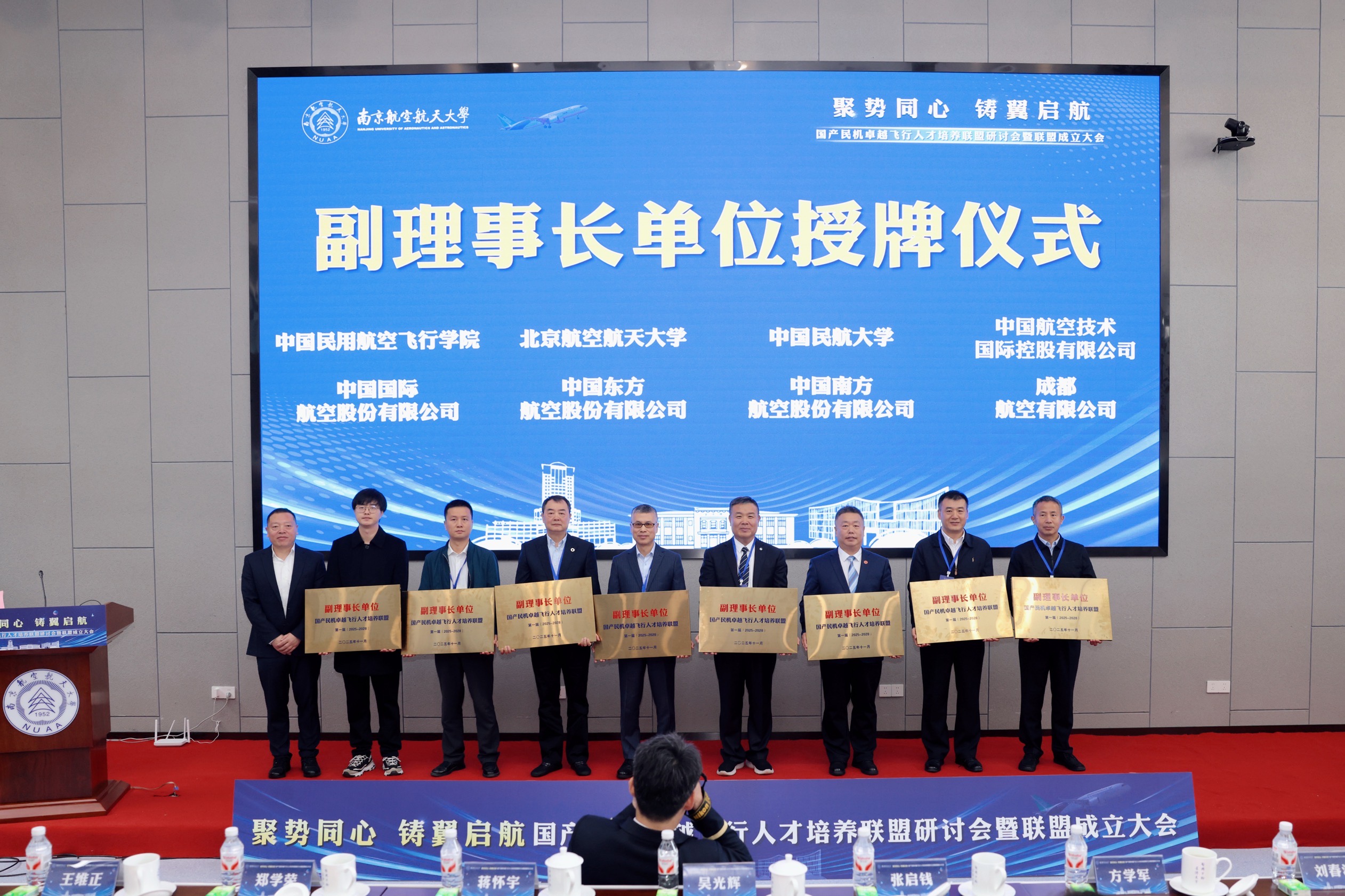 南京航空航天大学携手中国民用航空飞行学院、北京航空航天大学、中国民航大学、中国航空技术国际控股有限公司、中国国际航空股份有限公司、中国东方航空股份有限公司、成都航空有限公司等副理事长单位联合发起成立“国产民机卓越飞行人才培养联盟”,为国产民机事业发展注入强劲人才动力。中山大学、太原理工大学、昆明理工大学、内蒙古工业大学、山东航空学院、南昌航空大学、安阳工学院、常州工学院、郑州航空工业管理学院、西安航空学院、南京航空航天大学金城学院、吉林省福航航空学院有限公司、南非艾维国际飞行学院、龙昊通用航空集团股份有限公司、青岛九天飞行学院、新疆天翔航空学院、湖北蔚蓝通用航空科技股份有限公司、珠海中航飞行学校有限公司、陕西凤凰国际飞行学院、安徽蓝天国际飞行学院等理事单位,我校教务部、学生处、天目湖校区管委会、无人机研究院、牧星学院、民航学院、通用航空与飞行学院有关负责同志和教师参加会议。