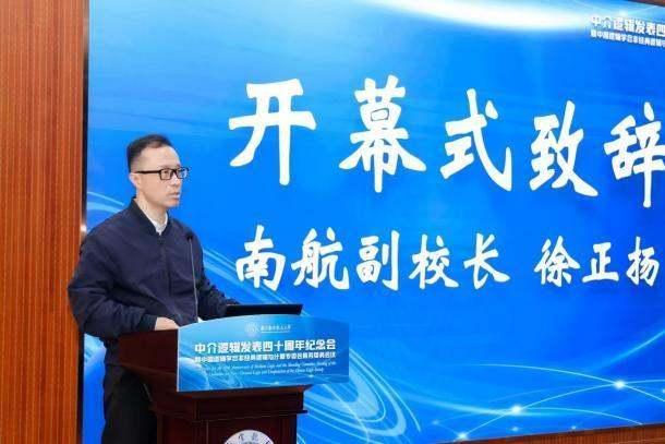 徐正扬致开幕词,他向莅临本次学术盛会的各位领导、专家学者致以热烈欢迎。他表示,朱梧槚教授是南航计算机科学研究所创始人,他开创的中介逻辑体系四十年来不断发展完善、影响深远。南航始终高度重视基础学科建设与交叉学科发展,逻辑学作为思维科学的核心,为学校航空航天、计算机、人工智能等优势学科的创新发展提供了重要的逻辑支撑。希望以此次会议为契机,深入探讨中介逻辑及非经典逻辑与计算领域的前沿问题,分享最新研究成果,凝聚学科发展共识,推动该领域理论创新与实践应用迈向新高度。