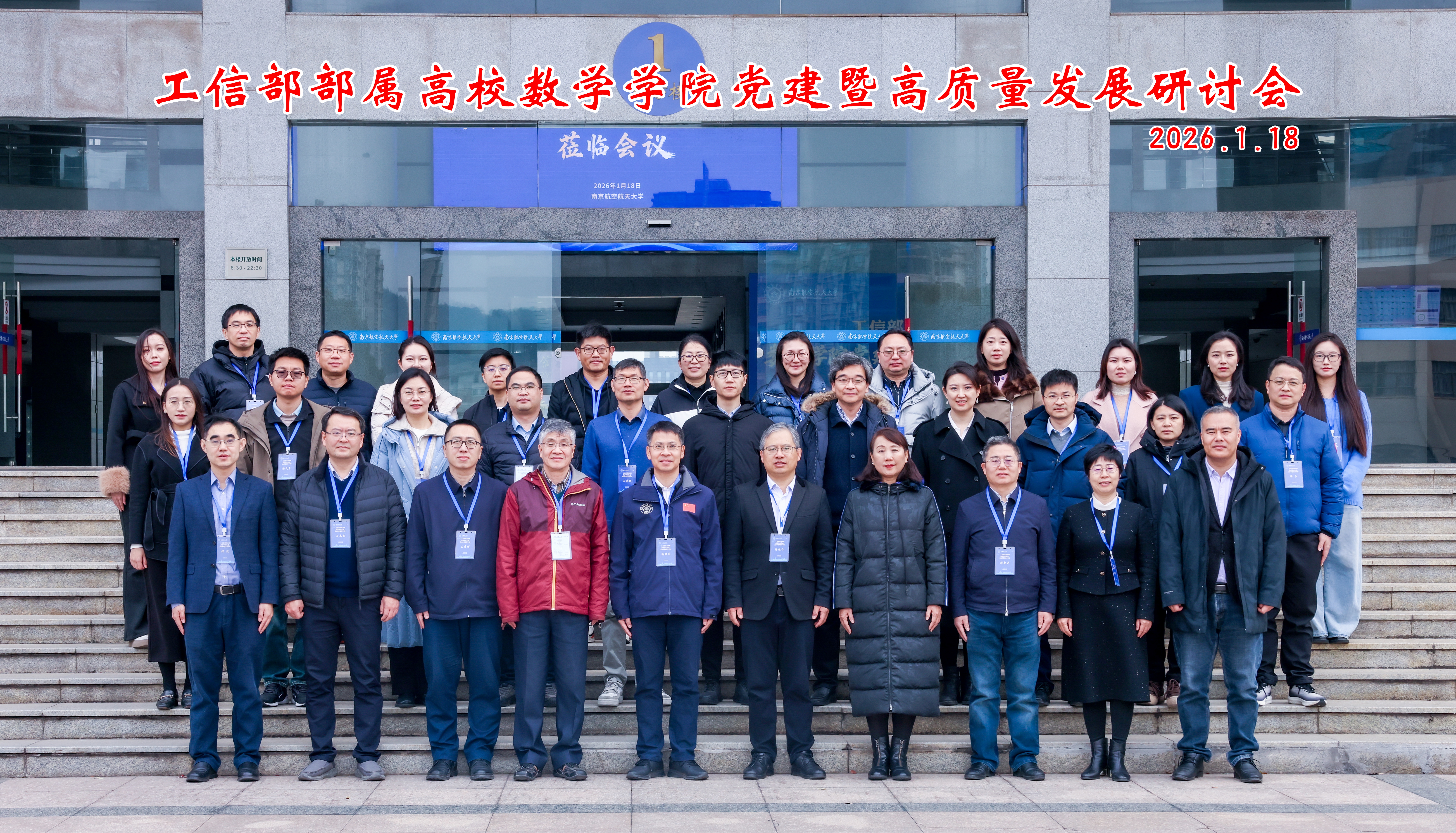 1月18日,由我校数学学院发起组织的工信部部属高校数学学院党建暨高质量发展研讨会召开。来自部属七所高校数学学院的主要负责人及相关教师齐聚南京,围绕“服务国家战略,聚力特色发展”主题,深入探索“一融双高”服务国防需求,推动学院高质量发展的建设路径。校长助理潘时龙出席会议。