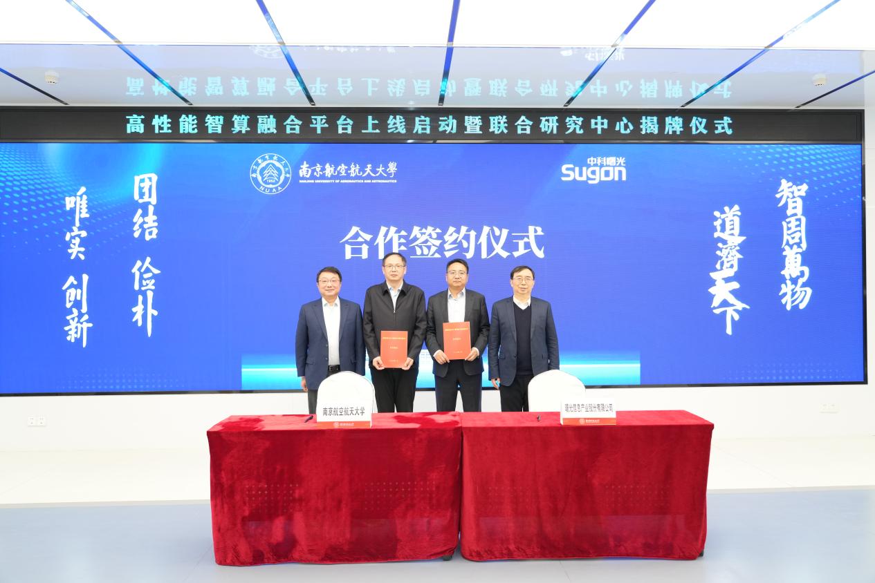 我校与中科曙光共同为“超智融合创新应用研究中心”揭牌;与江苏联通共同为“AI算力联合创新研发中心”揭牌。