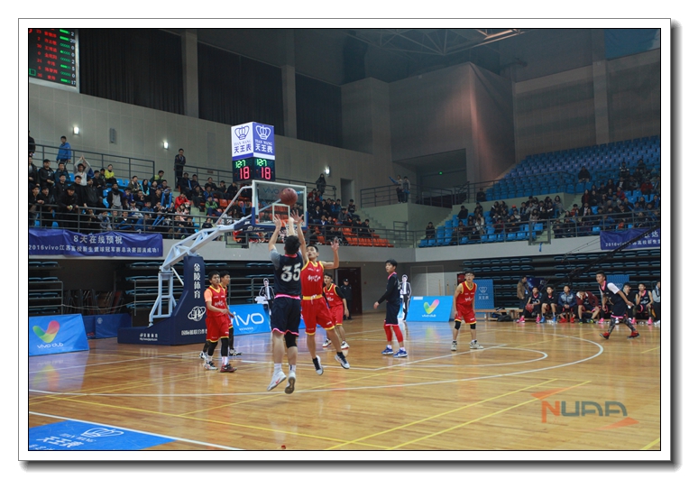 12月11日下午两点,由江苏学生体育协会高校工作委员会篮球分会、江苏省篮球运动协会及南京动爽体育科技有限公司联合主办,2016vivo江苏高校新生篮球冠军赛总决赛在我校将军路校区体育馆拉开帷幕。我校由2016级新生组成的男子篮球队以江宁赛区冠军的身份跻身总决赛,先后战胜江苏理工大学、苏州大学、宿迁学院和江苏科技大学获得总决赛冠军。 据悉, “2016vivo江苏高校新生篮球冠军赛”作为江苏首届针对高校新生举办的大型篮球赛事,超过一百所高校,近万名新生参赛。此次赛事旨在推动高校篮球文化发展,丰富大学生业余生活,强健体质,构建和谐、健康的校园生活方式;同时更有利于新生更快、更好的融入新环境,促进和谐的人际交往。 ![]() ![]() ![]() ![]() ![]()