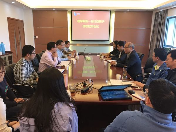 4月27日,理学院新一届行政领导班子任职宣布会在学院517会议室举行,校党委常委、副校长黄志球,组织部副部长高小泽出席宣布会,理学院现任党政领导班子全体成员,学院各系部主任、支部书记、教师代表参加了会议。会议由学院党委书记余春玲主持。
