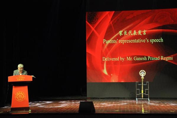 家长代表Ganesh Prasad Regmi(尼泊尔)向南航表达了感谢,感谢学校营造的积极氛围,感谢老师们把女儿教育的这么出色。他为今天毕业的所有孩子感到骄傲。