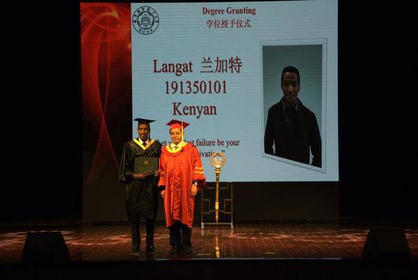 副校长宋迎东为其余34个国家的留学毕业生拨穗并授予学位。