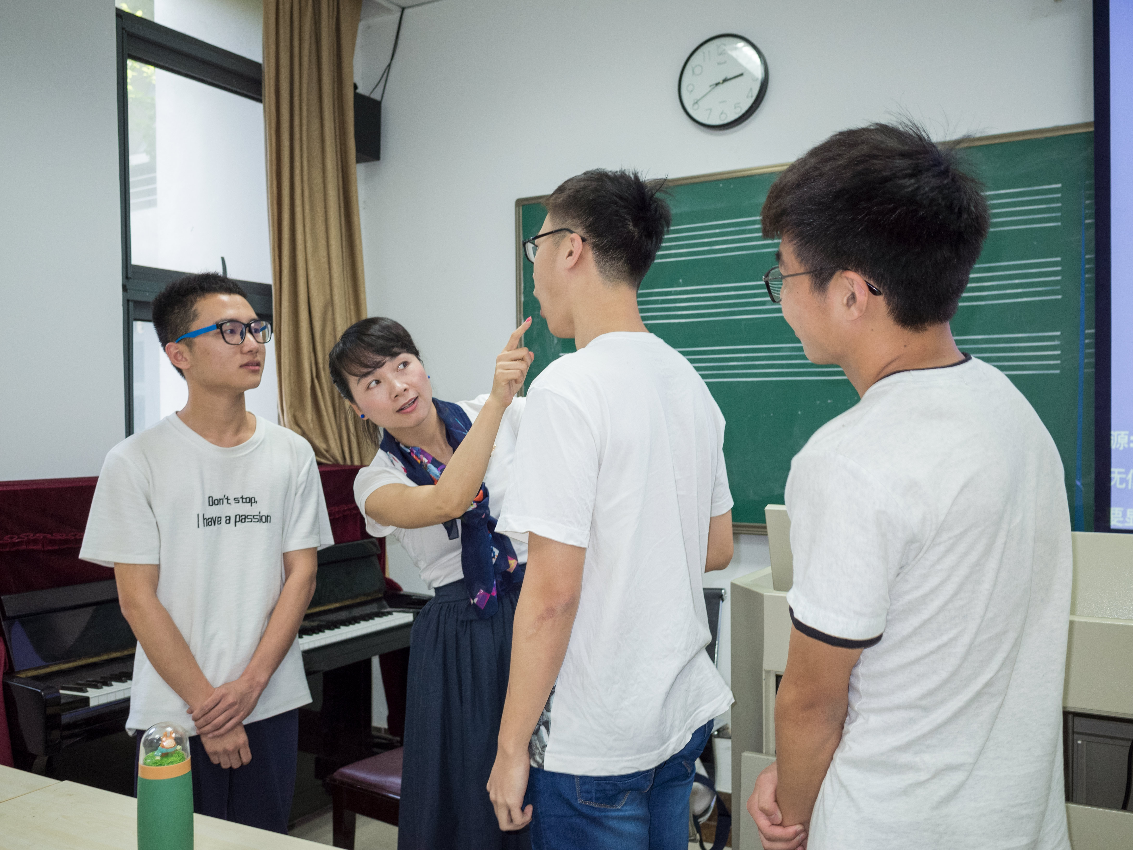 这门课程在2016至2017学年的第二学期正式开出,课堂就在艺术学院的声乐教室。课程采取20名学生的小班化教学,为了让这些刚入大学校门且来自全校不同学院、不同专业的工科学生积极参与讨论,邱爱金老师首先系统地讲授声乐、歌唱以及如何控制气息等声乐基础知识;陈复扬老师则通俗易懂地讲授了控制、自适应控制的基本原理,让学生意识到歌唱同样也包含着控制的思想,要唱出优美的歌声,就要对自己的发音不停地进行调整,这本质上就是一种自适应控制过程。两位老师分别从艺术和控制的不同角度讲述了二者的逻辑关系,使学生能够很快理解了开设这门课程的目的。