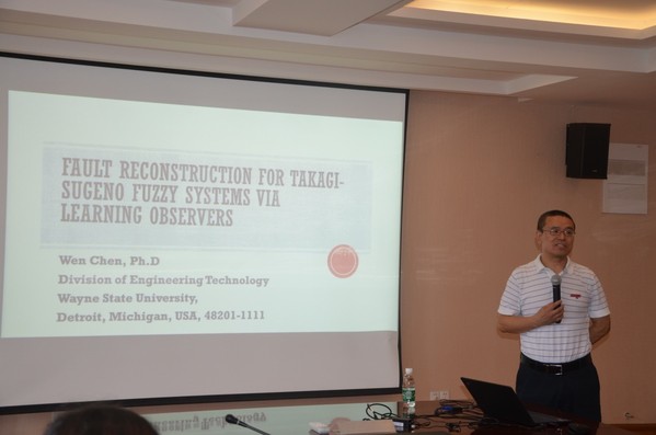授聘仪式结束后,Wen Chen教授为学院师生做题为“Fault Reconstruction for Takagi-Sugeno Fuzzy Systems via Fuzzy Learning Observers”的学术报告。Chen教授在讲座中主要介绍了基于观测器的T-S模糊系统的故障重构问题,通过设计两种模糊学习观测器,实现了对系统状态和执行器故障的重构,并运用Lyapunov稳定性理论证明了所设计观测器的稳定性和收敛性。值得一提的是,Chen教授所设计的观测器可以通过求解线性矩阵不等式来实现,这相较于以往的试凑法要方便很多。在工程应用方面,Chen教授以一个单链接柔性机械臂为例为我们讲解了他所提出的方法的有效性。