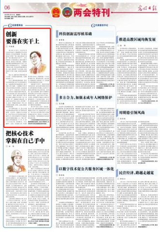 编者按:3月14日,《光明日报》两会特刊“名家看两会”专栏刊发嫦娥系列各型号及火星探测器总指挥、总设计师顾问,空间科学与深空探测首席科学家,我校航天学院院长叶培建院士《创新要落在实干上》一文。文中,叶培建院士结合多年科学实践和思考,畅谈创新思维和人才培养。现转发全文: