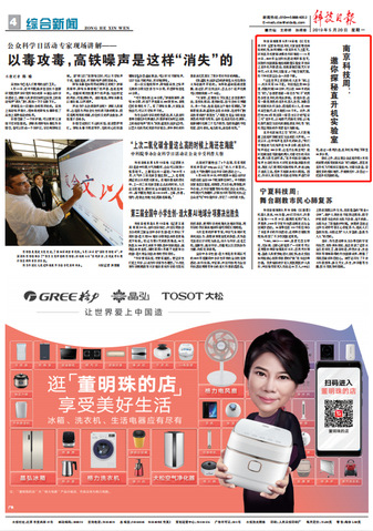 直升机大家族有哪些神秘的机型,如何操纵一架直升机飞上蓝天,研制直升机要解决哪些科研难题……5月19日,2019年全国科技活动周开幕当天,国防科技创新基地战略联盟实验室开放日之直升机科普活动,在南京航空航天大学举行,6大直升机实验室、1个航空航天馆、数十种机型让公众一次看个够。