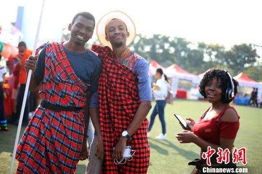桑尼亚留学生身着民族服饰拍摄合影。 泱波 摄