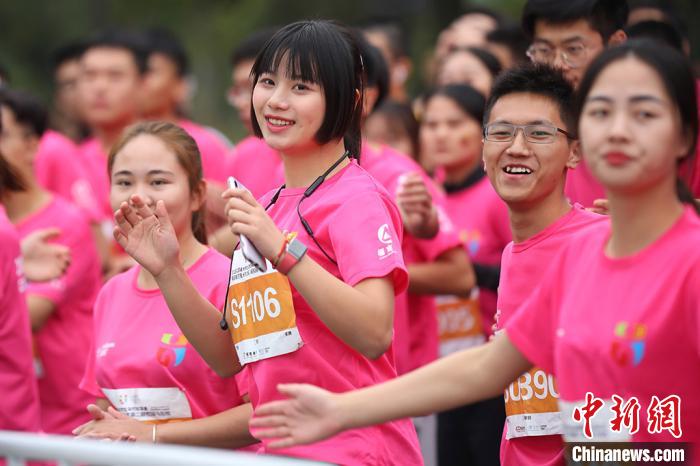 大学生奔跑在赛道上。 泱波 摄
