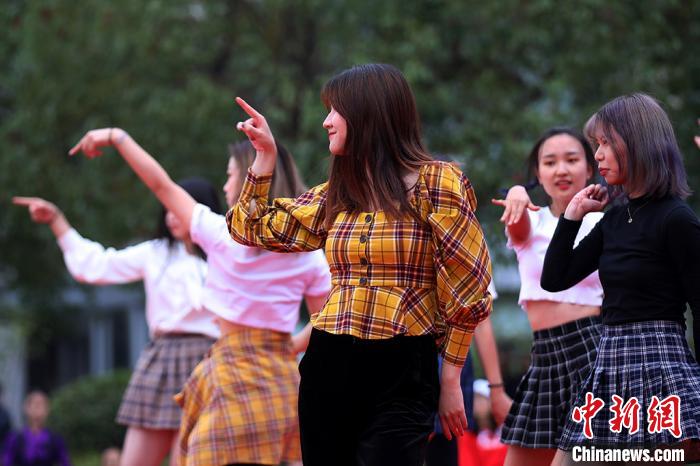 南京航空航天大学舞蹈社团的成员为比赛助兴。 泱波 摄