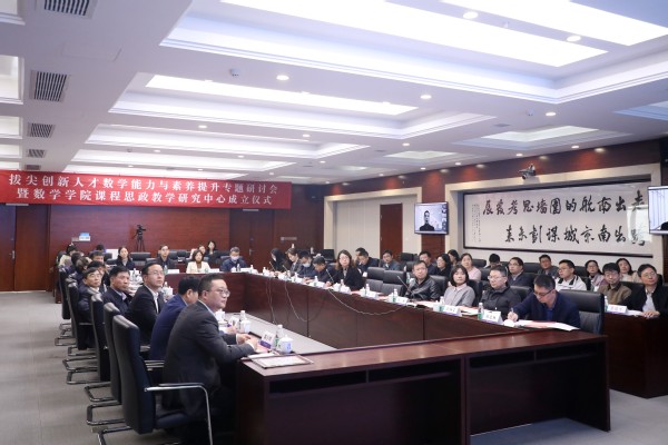 为深入学习贯彻党的二十大精神,贯彻落实科教兴国战略,强化现代化建设人才支撑,进一步推动理科卓越工程,提升新工科人才数学能力与素养,2022年11月20日,数学学院联合教务处、教师发展与教学评估中心共同主办“拔尖创新人才数学能力与素养提升专题研讨会暨数学学院课程思政教学研究中心成立仪式”。教育部长江学者、南京大学秦厚荣教授,欧洲科学院院士、东南大学曹进德教授,国家教学名师、西安交通大学李继成教授,教育部大学数学课程教学指导委员会委员、东南大学陈建龙教授,全国模范教师、国防科技大学李建平教授等多位专家学者通过线上线下参会。副校长施大宁,教务处处长孔垂谦、教师发展与教学评估中心主任朱建军、航空学院党委书记袁智强、航空学院院长魏小辉、马克思主义学院院长王智、长空学院常务副院长蒋彦龙,数学学院全体班子、教务处、学生处相关负责人及教师代表参会。会议由数学学院院长王春武主持。