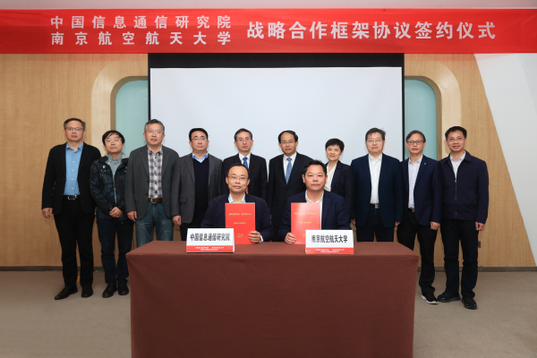 11月23日,我校与中国信息通信研究院在南京举行战略合作框架协议签约仪式,中国信息通信研究院院长余晓晖,我校校长单忠德院士,副校长宋迎东、吴启晖出席签约仪式。