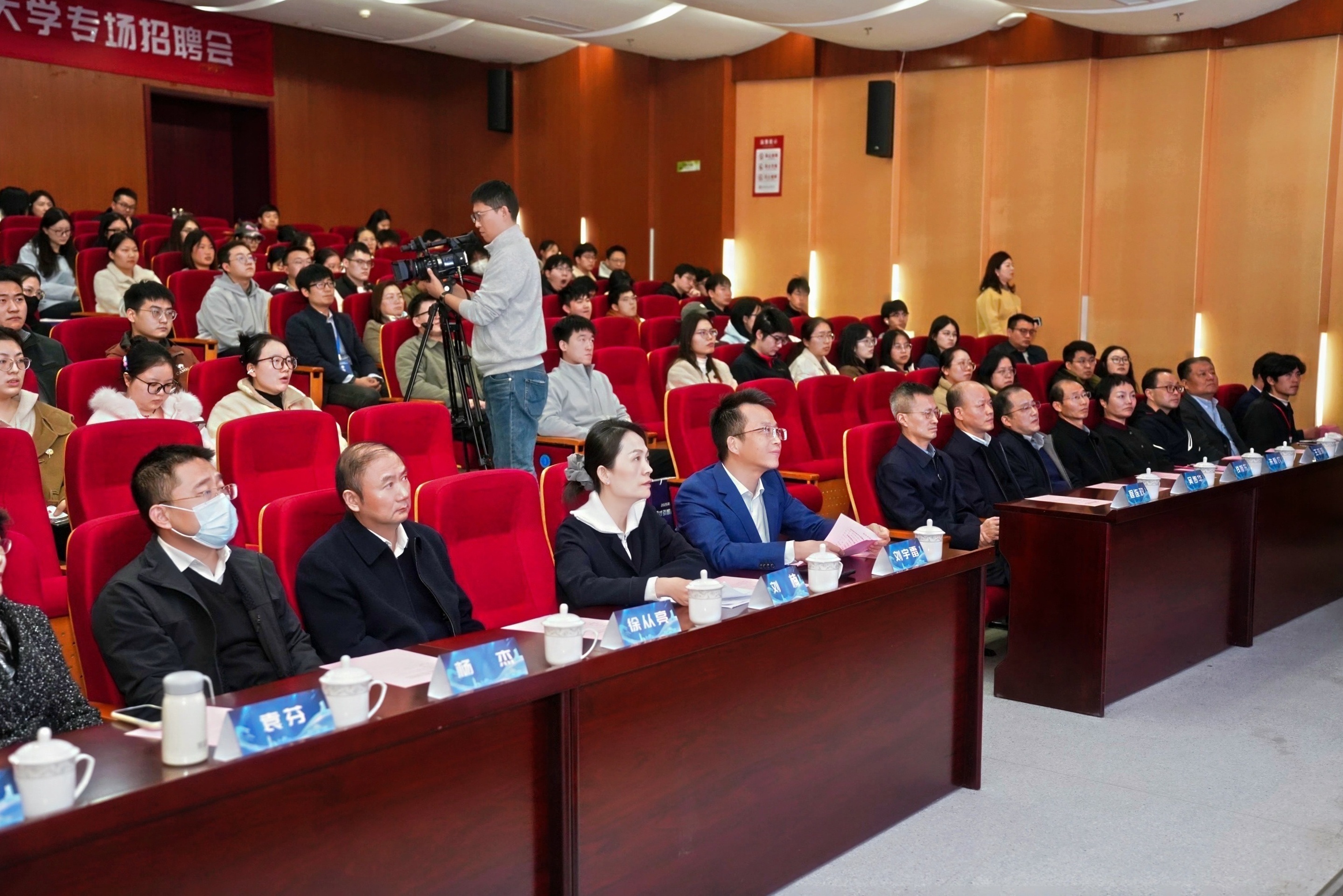 安徽省人社厅有关负责同志,招聘工作负责同志,我校学生处、各学院党委副书记、毕业生就业工作人员以及2026届毕业生现场参会。