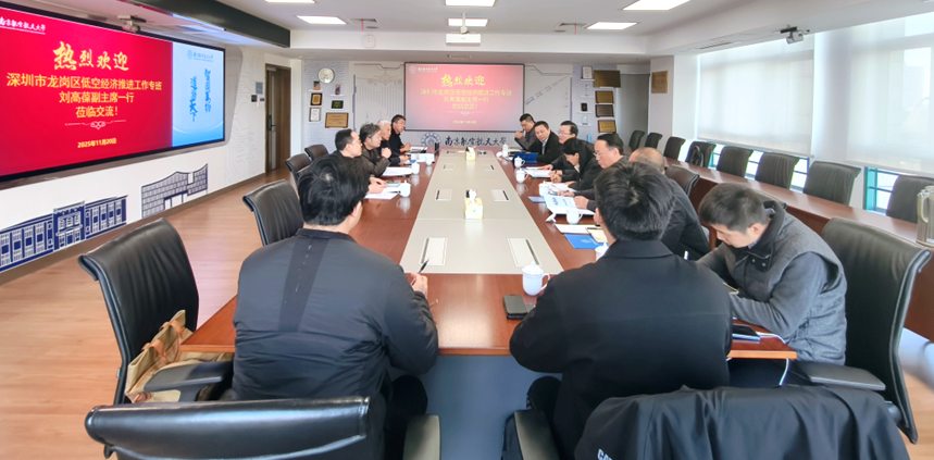 11月20日,深圳市龙岗区政协党组成员、副主席刘高葆一行来校调研,围绕低空经济领域的技术创新、产学研合作、人才培养以及城市低空安全与防护等议题进行座谈交流。副校长吴启晖出席会议,会议由低空经济创新发展研究院执行院长孔令华主持。