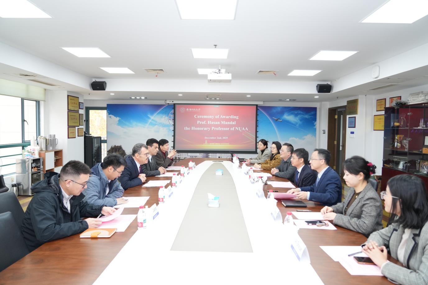 12月2日,土耳其伊斯坦布尔科技大学(ITU)校长哈桑・曼达尔教授受聘南京航空航天大学名誉教授仪式在明故宫校区举行。校长助理潘时龙出席会议。仪式由航空学院院长魏小辉主持。