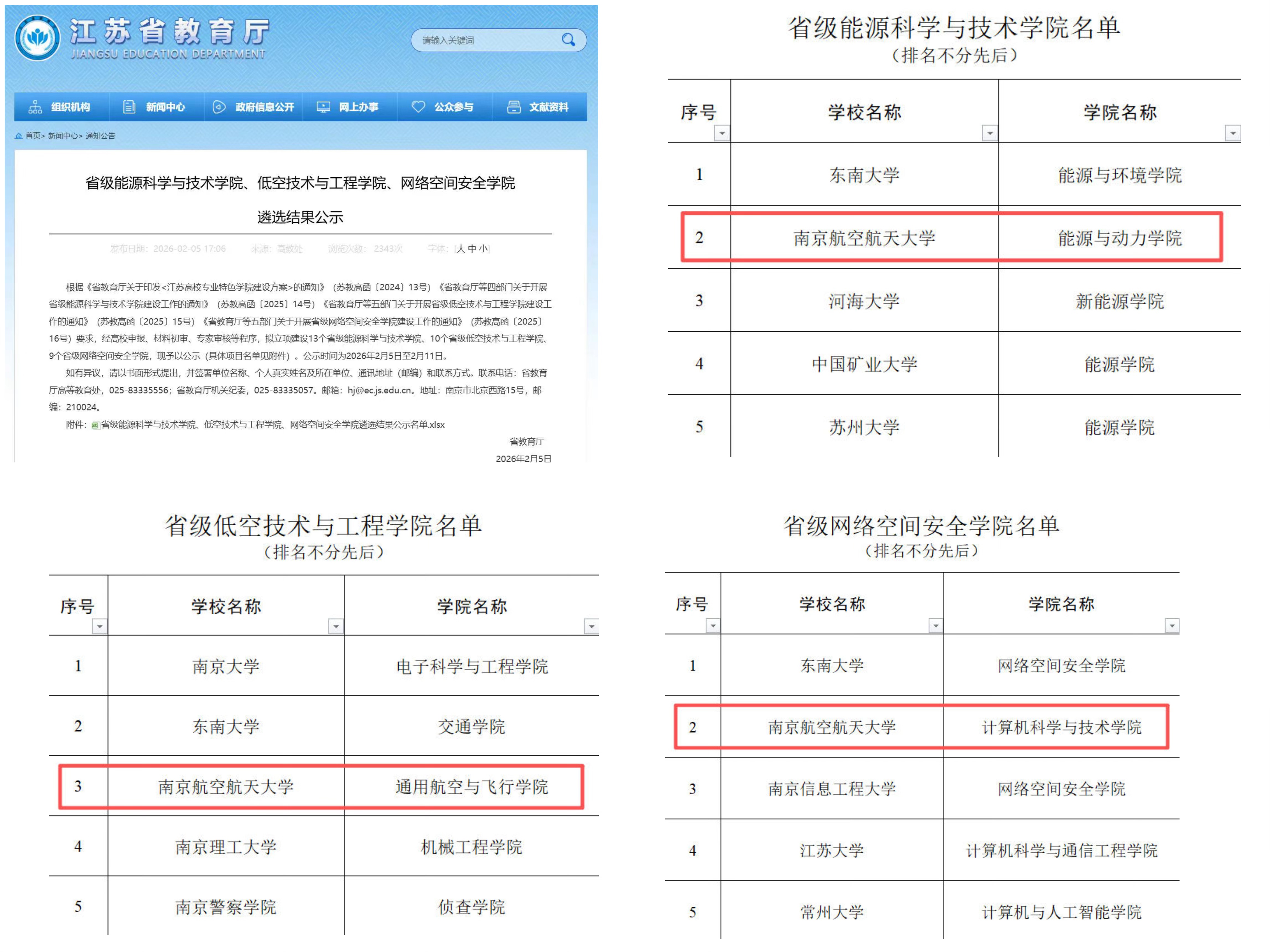 近日,江苏省教育厅公布了新一轮省级专业特色学院立项建设名单。我校申报的省级能源科学与技术学院、省级网络空间安全学院、省级低空技术与工程学院全部成功入选,此次全省共立项建设省级能源科学与技术学院13个、省级低空技术与工程学院10个、省级网络空间安全学院9个。