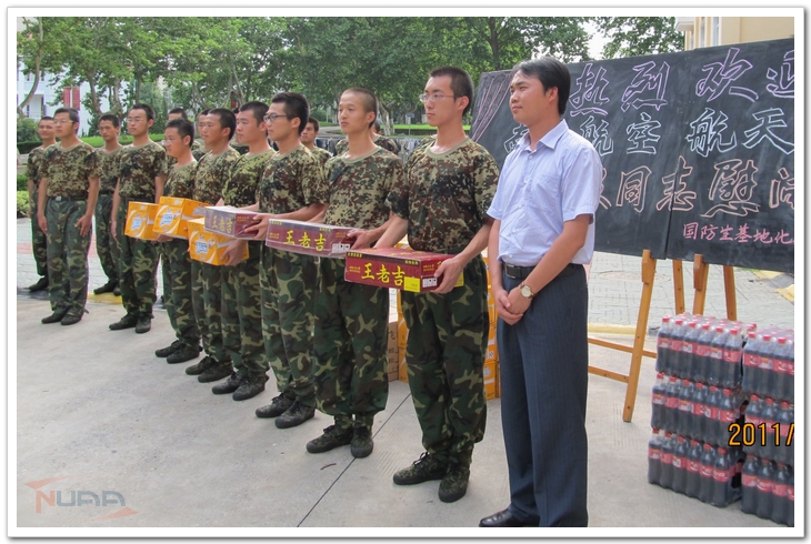 8月11日下午,受校领导委托,学工部副部长侍旭、人武部副部长李辉以及部分院党委副书记组成慰问团赴南京炮兵学院,慰问了在此进行暑期军政集训的我校2010级82名国防生。南京炮兵学院基础部主任郑建平,政委朱荣军和65队教导员范超雄接待了我校慰问团。 在走访慰问中,侍旭代表学校向国防生表达了关心和鼓励。慰问团成员走访了军训团学员宿舍,查看了寝室内务卫生状况,并与参训国防生们亲切交谈,了解他们的学习生活情况,送上解暑的水果及饮料。国防生非常感谢学校对他们的关心,并一起为慰问团表演了大合唱《打靶归来》,这一节目展现了他们朝气蓬勃的精神面貌。 据悉,本次国防生暑期军政集训历时一个月,国防生们以普通一兵的身份与部队官兵同吃、同住、同生活、同学习、同训练,通过理论学习、队列训练、战斗训练等方式,进一步巩固保家卫国的信念,练就过硬军事本领。 |