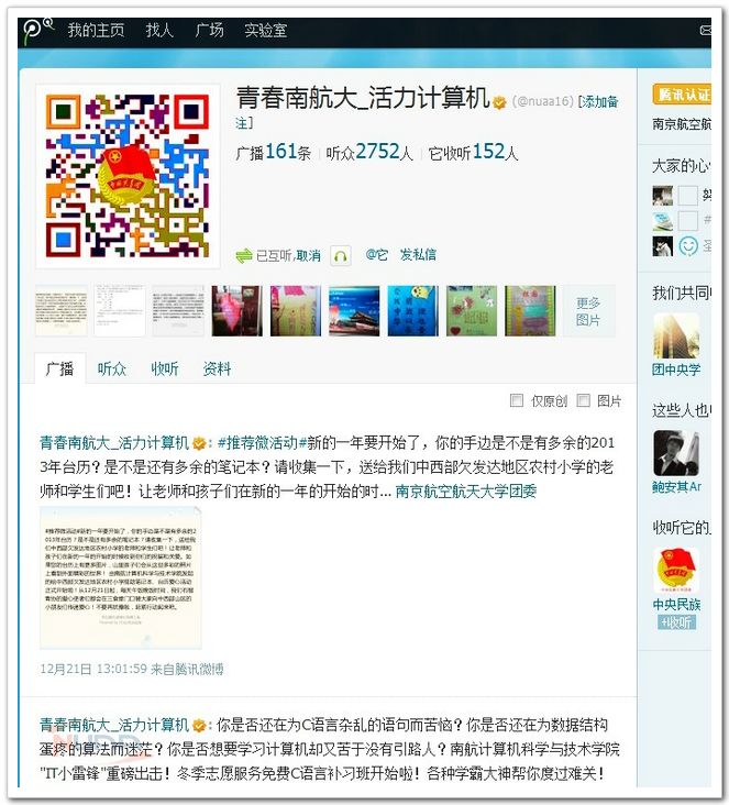 “新的一年要开始了,你的手边是不是有多余的2013年台历?是不是还有多余的笔记本?如果有,请不要吝惜,把它送给我们中西部欠发达地区农村小学的老师和学生们吧!写下你诚挚的祝福,让老师和孩子们在新的一年的开始的时候收到你们的祝福和关爱!”这是计算机学院团委官方微博不久前发出的一条倡议。 该活动是计算机学院团委青年志愿者协会联系国内知名西部助学网“慧人智心”举办的新年献爱心公益活动,各地志愿者将收集到的新年台历、笔记本统一寄送给西部助学网定点帮扶的四川盐源县、陕西略阳县、安徽寿县的多所学校。倡议发出后,计算机学院青协的同学在明故宫校区12号楼、将军路校区樱花广场和三食堂门口设了物资收集点,严寒冬日,也挡不住我校师生为贫困学生送温暖献爱心的热情。不到一周的活动时间内,累计收集全校师生捐赠的台历和笔记本165本,台历和笔记本扉页中写着我校师生对孩子们的鼓励和祝福:“好好学习,明天会更好!”“小小台历提醒着你珍惜每一寸光阴,多读书,多运动,新年快乐,开心进步!”“我是南京航空航天大学的一名大学生,收到我笔记本的小朋友你在哪里?愿你努力学习,考入理想的大学,南航等着你!”……目前,计算机学院的青年志愿者们已将2大箱捐赠物资送往“慧人智心”助学网南京志愿者总部。当然,他们还不忘将我校最新的招生宣传画册一起装入箱内,并留下了自己的通信地址,想通过这种方式鼓励更多的孩子们从小树立远大志向,努力拼搏,长大也能考入南京航空航天大学。 为中西部贫困地区的孩子捐一本新年台历或笔记本,看似只是一件很小的善行。有时慈善、公益志愿服务只是身边一件小事,却能让关爱、奉献、互助、进步精神得到升华。该捐赠活动将持续到2013年1月10日,如果老师和同学们也想加入此次队伍,为孩子们献上一份爱心和一句鼓励的话语,请联系计算机学院团委青年志愿者协会。(“青春南航大_活力计算机”腾讯微博http://1.t.qq.com/nuaa16,新浪微博http://weibo.com/u/2204035812)。 ![]() ![]() |