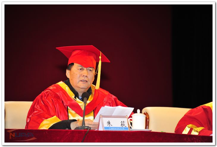 3月29日下午, 我校2013届研究生毕业典礼暨学位授予仪式在明故宫校区隆重举行。校长朱荻、校党委副书记、副校长陈夏初、校纪委书记吴庆文、副校长、研究生院院长聂宏、校长助理熊克、校长助理黄炳辉出席了仪式,仪式由副校长、研究生院院长聂宏主持,校学位评定委员会委员、党政办、宣传部、校团委、研究生院负责同志,各学院院长,导师代表,研究生家长代表及1000余名毕业研究生参加了典礼。