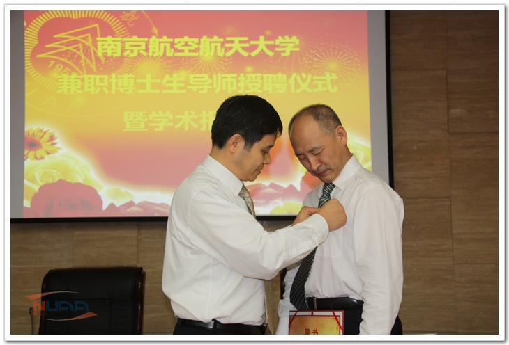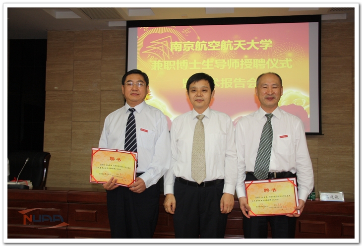 9月22日上午,我校在将军路校区举行了兼职博士生导师授聘仪式暨学术报告会。授聘仪式上,校长聂宏为高建设教授和刘洪德教授颁发了聘任证书,并佩戴了校徽。他代表学校对两位导师表示热烈的欢迎,并感谢中航工业集团多年以来对学校的支持。研究生院常务副院长夏品奇向两位导师赠送了《博士质量》等两本书。
