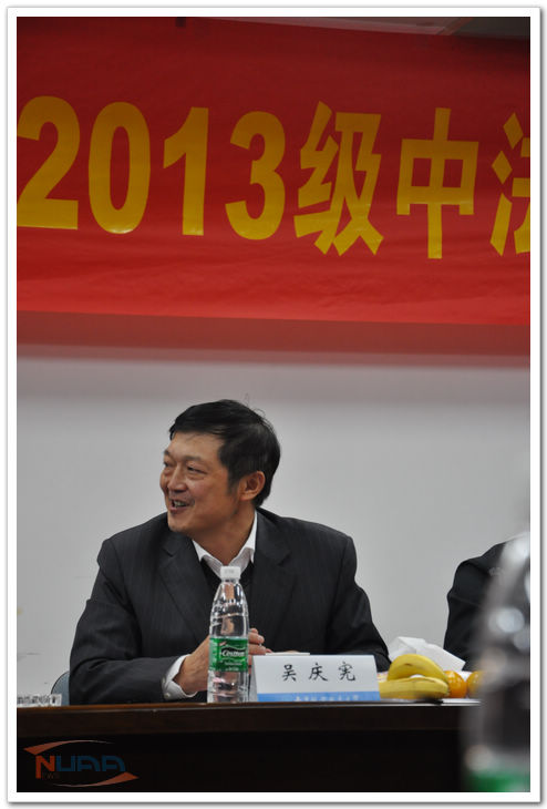 10月26日,南京航空航天大学2013级中法班开班典礼在将军路校区举行。副校长吴庆宪,学生处、教务处、将军路校区管委会、国际教育学院负责人、相关学院领导以及教师代表出席了开班典礼。首届中法工程师班二十五名同学及其辅导员参加了开班典礼,典礼由国际教育学院副院长范祥涛教授主持。 国际教育学院的院长何宁教授对中法班与卓越工程师培养方法作了详细的说明,他鼓励学生珍惜时光,充分汲取营养,并对他们在南航的学习生活提出要求。他希望在座的每位学生能够学习做一名品德优秀、诚实守信、互相尊重、遵纪守法,有责任感的大学生。