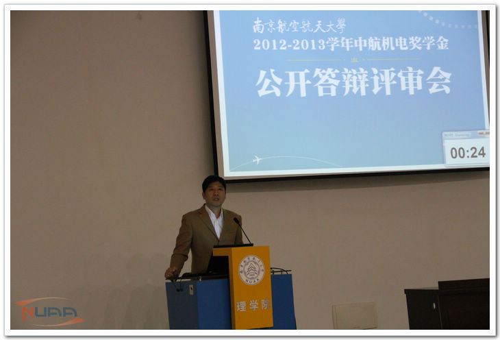 11月1日,2012-2013学年中航机电奖学金公开答辩评审会在我校将军路校区举行。中航机电系统有限公司人力资源李重海部长,以及来自学生处、研工部、将军路校区、航空宇航学院、民航学院、理学院等学院的领导和教师参加了答辩会并担任答辩评委。此次答辩最终从35名候选人中选出18名获奖学生,每人获得一万元奖学金。 中航机电奖学金是由中航机电系统有限公司设立的专项奖学金,用于激励南航学生在校期间勤奋学习,刻苦钻研,全面发展,献身祖国航空事业。中航机电奖学金是我校设奖额度最高的奖学金之一,已成为备受我校学生关注的重点奖项。参加本次答辩本科学生和研究生均为校一等奖学金获得者,平均学分绩点在4.0以上,他们中有25门课95分以上,最低分98分、两科100分,42门必修课、21门专业第一的“超级学霸”;有学以致用,潜心科研,承担和参加多项国家级、省部级等科创基金和竞赛的“科创大神”;有游猎国外诸国,在专业学术会议上交流发言的“国际精英”;更有在一年里发表和录用论文14篇(其中,SCI 11篇)的“科研牛人”。他们通过PPT演示的形式向评委及学生观众展示了自己在学习、学术、创新实践、社会工作以及志愿服务等方面取得的成果。