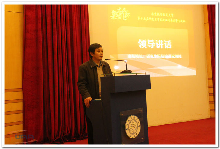 11月18日,由校研究生院、校团委及校科协联合主办,校研究生会承办的“枭龙杯”第十五届研究生学术论坛主论坛开幕式暨主论坛在明故宫校区科学馆报告厅举行。校长、研究生院院长聂宏教授,江苏省学生联合会执行主席赵乐乐,研究生院、科协、团委以及各兄弟学校的研究生会负责人出席了本次活动。 聂宏校长对此次研究生学术论坛的成功举办表示热烈祝贺。他指出,在同学们的科研之路上,首先要立志,明确自己的目标和方向。其次,在实践过程中要勤学、深思,最重要的是在追寻真理的过程中能够坚持,不轻言放弃。他还强调了交流实践对于科研的重要性。希望每一位南航的同学都能够成为一名创新能力强、实践能力强、学术交流能力强的人。最后,他以一位师长的恳切言辞表达了对我校研究生学术发展的殷切期望和对本届“枭龙杯”学术论坛的美好祝愿。