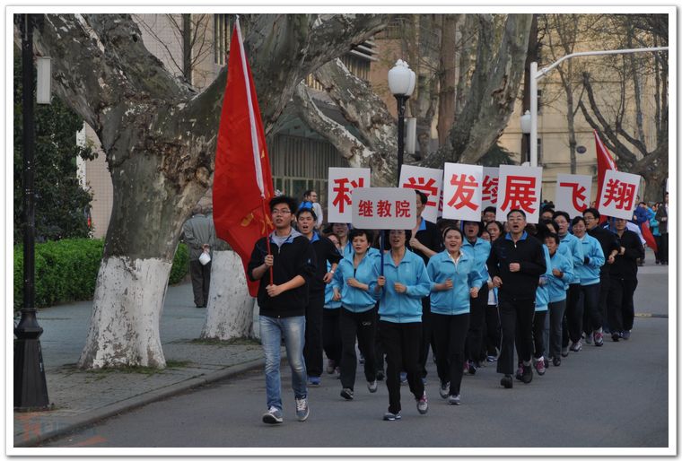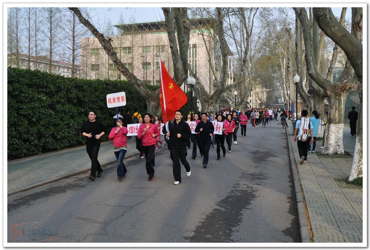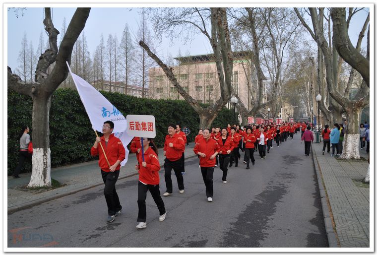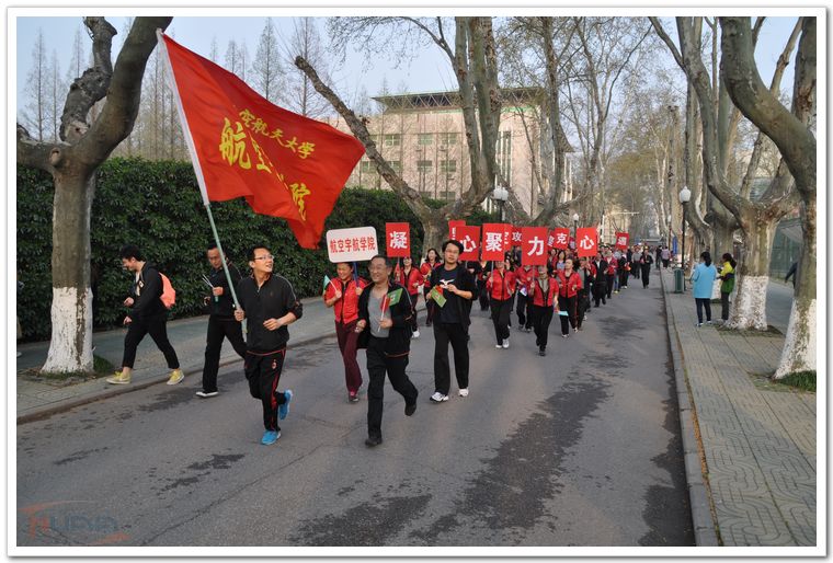 3月28日下午,雨后的校园,空气清新,春光明媚。校明故宫体育运动场上,彩旗飘扬,“发展体育运动,增强人民体质。每天锻炼一小时,健康工作五十年,幸福生活一辈子”的大幅标语,横挂在运动场主席台对面,全校22个部门工会组队参加了本届迎春长跑。 在副校长、校体育运动委员会主任吴庆宪的带领下,全体校工会常委走上主席台。校工会常务副主席袁贵平简短仪式讲话后,副校长吴庆宪为长跑发令,随着一声枪响,第二十六届迎春长跑正式开始。浩浩荡荡的队伍由校卫队员组成的领跑方队开道,各单位方队依次出发。只见各单位的旗手和领导跑在方队的最前列,大家身着整齐的服装,精神抖擞,情绪高昂,奔跑在校园道路上。队伍里还不时地亮出横幅标语,传来嘹亮的口号声。长长的行进队伍,充分展示了南航人团结拼搏、开拓创新、奋勇向前的精神风貌。长跑队伍从运动场出发,环绕校园一周,两千多米的行进路程,已使参跑者汗流浃背,得到了适度锻炼。长跑结束后,很多单位余兴未了,还在校园里集体合影留念,欢乐祥和气氛在校园里荡漾。本次活动在各部门工会的精心组织下,取得了圆满成功。