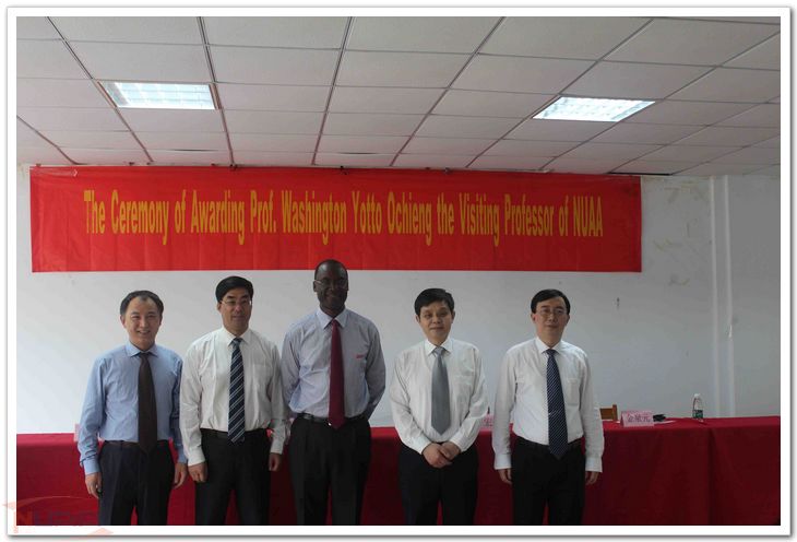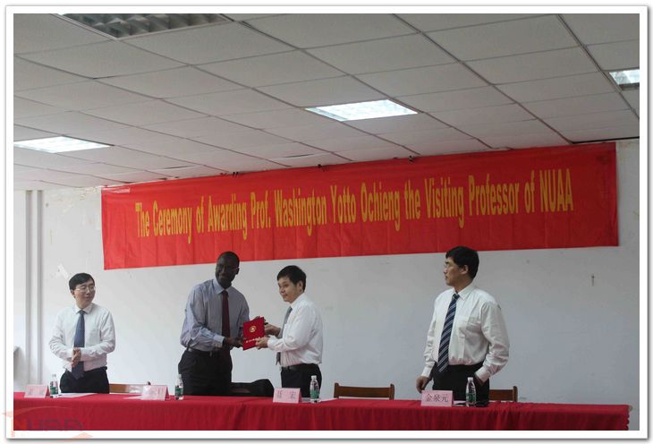 5月20日下午,我校在自动化学院智能楼举行了客座教授授聘仪式,聘请英国帝国理工学院华盛顿.欧强(Washington Ochieng)教授担任我校客座教授。校长聂宏教授出席了聘任仪式,为欧强教授颁发了荣誉证书并佩戴了南航校徽。