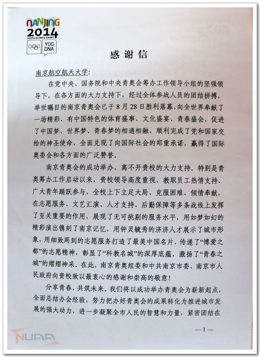日前,南京青奥组委、南京市委、南京市人民政府给我校发来感谢信,对我校的大力支持和志愿者优质的服务水平给予充分肯定和感谢。信中说到,南京青奥会的成功举办,离不开贵校的大力支持,特别是青奥筹办工作启动以来,贵校领导高度重视,教职员工热情支持、广大青年踊跃参与,全校上下立足大局、克服困难、倾情奉献,在志愿服务、文艺汇演、人才支持、后勤保障等多条战线上发挥了至关重要的作用,展现了无可挑剔的服务水平,用细致周到的志愿服务打造了最美中国名片,传递了“博爱之都”的志愿精神,彰显了“科教名城”的深厚底蕴,激扬了“青春之城”的熠熠神采。向贵校致以最衷心的感谢和崇高的敬意。 2014年8月16日至28日,第二届夏季青年奥林匹克运动会在南京举办。我校承担了开闭幕式和总部酒店两大岗位志愿服务工作,这两项工作都是青奥会志愿服务工作“重点中的重点,核心中的核心”。青奥会这项国际赛事也是我校历史上承担人数最多、工作任务最重、持续时间最长的志愿服务工作。 我校青奥会志愿服务相关工作自2013年9月份启动,经过招募宣传、面试选拔和资格审核,组成了1610名志愿者的南航青奥大家庭。在过去的368天,志愿者们共同经历了通用培训、场馆实训和赛时服务,他们积极工作、无私奉献,以“零安全事故、零明显失误、零工作投诉”的出色成绩完成了这项国际赛会任务。先后被中央电视台、新闻联播、中国青年报、中国教育报、中新网等国家级、省、市级媒体报道140余次。我校志愿者代表得到伊朗秘书长等各国领导的感谢信表扬,并受到了李克强总理的亲切接见。 ![]() ![]() |