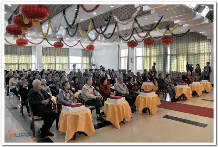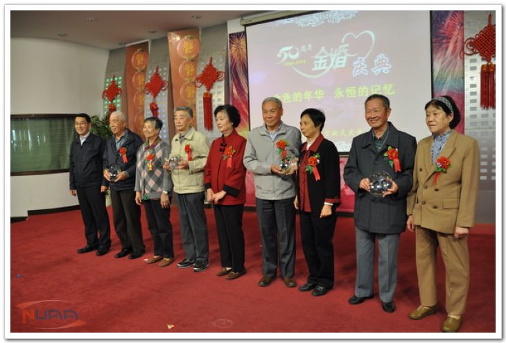10月24日下午,我校2014年金婚庆典活动在西苑教职工活动中心隆重举行。校党委常委、纪委书记吴庆文出席并致辞。学校有关部处及金婚夫妇原单位领导,部分离退休老同志,学生代表,现代快报、江南时报、中新网、中国江苏网等十多家媒体的记者共150余人参加了庆典活动。 随着门德尔松的婚礼进行曲响起,胸带红花的十一对金婚夫妇们一一迈步走上红地毯,在舞台登台亮相,向观众挥手致意。他们手挽手,肩并肩,身影相随,一举一动都流露出温情和默契。台下掌声如潮,都为见证这半个世纪的爱情而喝彩。 各位金婚夫妇落座后,大屏幕上滚动播放起为这次金婚特别制作的短片《金色的年华,永恒的记忆》:新婚燕尔的甜蜜,中年相伴的默契,老来相伴的从容,不同阶段的照片都显示着爱情别样的魅力。“比肩同行五十载,老来情深意更长。”岁月在他们身上留下了风霜的痕迹,但他们间的真情始终不变。半个世纪相濡以沫、喜乐相依,他们相扶相携,把许许多多平凡的日子也走成了一串风景,谱写出半个世纪温馨而动人的篇章,感染着现场所有人。 短片播放结束后,在热烈的掌声里,吴庆文给金婚夫妇致金婚贺词并颁发纪念品。吴庆文在致辞中,代表学校党委和党政领导,向参加庆典的金婚夫妇们表示热烈的祝贺,对他们多年来为学校作出的贡献以及在建设和谐家庭方面所起的榜样作用,表示崇高的敬意和诚挚的感谢。有感于金婚夫妇们的恩爱幸福,他即兴朗诵了《幸福的我们俩》一诗,并寄语在场的青年学生,要从这堂婚恋课程中受到启发,树立正确的婚恋观。最后,吴庆文祝福金婚夫妇和全校所有离退休老同志家庭幸福安康,万事如意。 接下来,夕阳红艺术团、艺术学院学生还为金婚夫妇们送上了精彩的节目,把金婚庆典的气氛推向了高潮。最后,与会领导们和金婚夫妇们共同合影留念,在幸福祥和的气氛中,这次金婚庆典活动圆满落下帷幕。 ![]() ![]() ![]() ![]() ![]() |