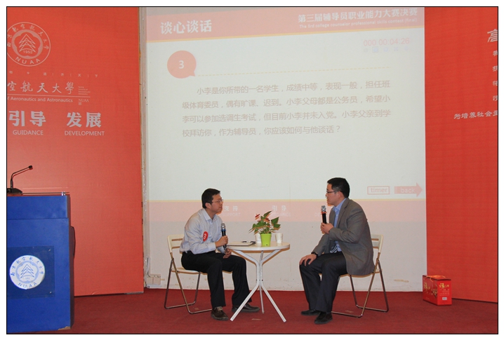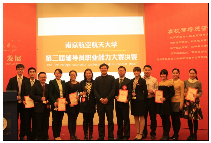 1月15日,我校第三届辅导员职业能力大赛决赛在明故宫校区科学馆报告厅举行。江苏省教育厅学生处处长杭连生、南京大学学生处处长刘源、东南大学学生处处长孙莉玲、南京理工大学学生处处长龚建龙、南京师范大学学生处处长贲国栋、河海大学学生处处长陆国宾、中国药科大学学生处处长张宝玲出席比赛并担任评委。校党委组织部、宣传部、人事处、教务处、学生处、研工部、校团委等部门和学院领导参与了评审。各学院党委副书记、全体专兼职辅导员观摩了比赛。 决赛项目包括自我介绍工作展示和谈心谈话情景再现两个环节,第一个环节辅导员根据抽签顺序依次上台对个人情况和特色工作进行介绍与展示,第二个环节辅导员以情景再现的方式开展谈心谈话,内容涉及人际关系、恋爱交往、就业、学习压力、学生日常生活等多个,来自学生处各科室的老师以及学生配合了该环节谈话。 ![]() 自我介绍与工作展示环节,自动化学院辅导员陶琨情真意切地讲述了自己与学生用笔尖写下的“风”“花”“雪”“月”,并向评委与观众展示了担任辅导员7年期间创作的自我成长与陪伴感悟的文集《捌万字》;谈心谈话情景再现环节,艺术学院雷蕾老师以岁月沉淀下的温柔与知性,引导家庭贫困却喜爱攀比的学生不随波逐流,坚守自我,踏踏实实走人生道路。 ![]() 比赛环节结束后,江苏省教育厅学生处处长杭连生进行了点评,他对我校辅导员的理论水平和工作能力予以了充分肯定,并希望辅导员再接再厉,多思考提炼,结合学校特点将工作做得更出色。 ![]() ![]() 比赛最终评选出一等奖两名,二等奖四名,三等奖六名。据悉,本年度辅导员职业能力大赛从2014年12月8日开始,88名辅导员参赛,历经初赛、复赛,通过日常工作台账检查、基础知识笔试、博文写作的比赛和角逐,最终12名优秀辅导员突出重围进入决赛。比赛中,辅导员展现了良好的精神面貌和扎实的工作技能,展示了南航学工人的风采。辅导员职业能力大赛作为展示队伍风采、提升职业素养,助力学生成长有着重要的意义。 ![]()