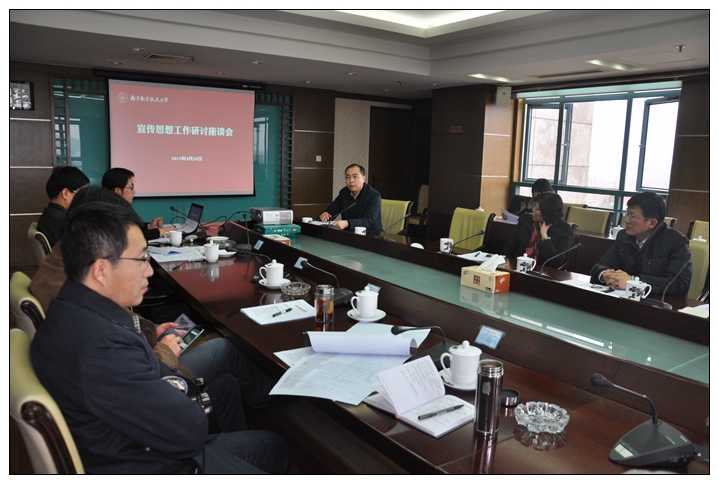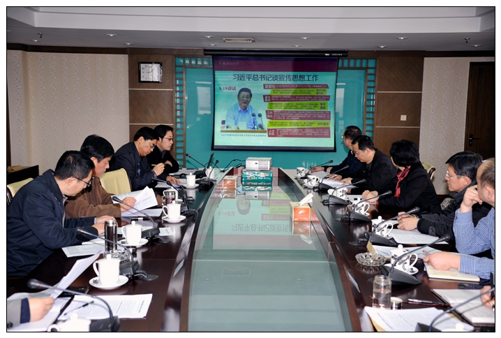 3月20日上午,我校宣传思想工作研讨座谈会在综合楼820会议室召开,会议就学习贯彻落实中办国办印发的《关于进一步加强和改进新形势下高校宣传思想工作的意见》(后简称《意见》)进行研讨座谈。学校党委副书记、副校长陈夏初, 学校党委常委、纪委书记吴庆文出席会议,宣传部、组织部、人事处、教务处、教学评监办、人文与社会科学处、思政部、学工部、研工部、发展联络部、国际合作交流处、信息化处、校工会、校团委等部门负责同志和部分学院党委书记参加会议,会议由学校党委常委、纪委书记吴庆文主持。 ![]() 陈夏初指出,《意见》是党中央站在全局和战略高度,对新时期高校宣传思想工作作出全面部署的纲领性文件,明确提出了新形势下高校宣传思想工作的指导思想、基本原则和主要任务,系统阐述了加强和改进高校宣传思想的方法和途径,希望有关部门同志认真学习有关工作要求,充分认识新形势下加强和改进高校宣传思想工作的重要性和紧迫性,明确要求,结合本部门的工作,把贯彻落实《意见》落到实处。陈夏初强调,加强和改进宣传思想工作要坚定不移地坚持党的领导,要全面深刻把握宣传思想工作的规律,要坚持“目标引领、主动作为、积极防守”工作策略,要善于凝聚智慧,广泛开展调研,找准存在问题,敢于创新,勇于实践,不断提升宣传思想工作科学化水平。 ![]() 吴庆文结合当前高校宣传思想工作面临的新形势新任务,强调了《意见》出台的重大战略意义,希望全校上下进一步统一思想、加强学习,全面领会《意见》精神,充分把握新形势下宣传思想工作面临的形势和存在的问题,认真开展调查研究,明确工作任务,扎实推进工作的落实。吴庆文指出,贯彻落实好《意见》要增强责任意识和强化底线思维,做到守土有责、守土负责、守土尽责,要创新思想政治教育,加强课堂管理,不断加强主流思想舆论和社会主义核心价值观的宣传,同时在两课的教育、教师师德建设、宣传思想工作队伍建设、利用新媒体开展宣传思想工作等方面要有新突破,切实为学校改革发展营造良好的舆论氛围,提供坚强的思想保障。 ![]() 与会各部门和学院负责同志分别就学习《意见》的收获体会、本单位在贯彻落实《意见》中承担的工作以及下一步如何贯彻落实《意见》畅谈了想法和建议,并就如何推动中国特色社会主义理论体系进教材进课堂进头脑、思想政治理论课的师资队伍建设、如何提高高校教师思想政治素质、如何增强大学生思想政治教育的针对性实效性、如何强化教材和课堂的管理、如何壮大主流思想舆论、进一步推动文化传承创新、进一步完善宣传思想工作的阵地和途径等问题畅谈了工作思路并进行了交流研讨。 ![]() 吴庆文在总结时强调,学习贯彻落实《意见》精神是学校当前和今后一个时期的重要任务,要进一步加强学习和动员,进一步研究制定贯彻落实好《意见》的配套制度和实施办法,分解细化各项工作任务,增强责任感和使命感。要突出重点,破解难点,加强工作协同,推动形成学校宣传思想工作的新局面。 ![]() |