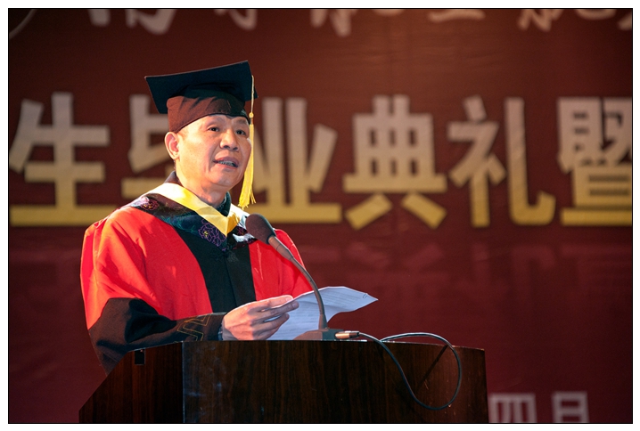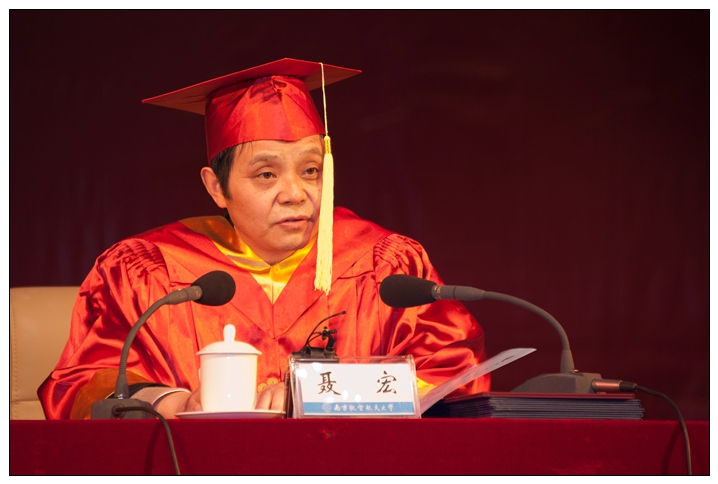 典礼最后,校长聂宏深情寄语毕业生。致辞中,他代表学校向圆满完成学业的全体2015届毕业研究生表示了祝贺,并以《论语》中的两句话勉励毕业生。一是“当仁不让于师”。聂校长鼓励毕业生们面对客观真理、大仁之道,不因现在所学、老师所讲、本本条框而束缚自己,要积极探索、勇于挑战权威,追求真理、追逐梦想。面对事业和使命,要拥有强大的内心和过硬的本领,以自信和能力、智慧和勇气真正担起历史赋予的使命,担起家庭、岗位、社会的责任,在担当中实现自己的人生价值。二是“先事后得,先难后获”。“万事开头难”,“一蹴而就”“一工作就想功成名就”既不符合客观规律,也不是取胜之道。聂校长勉励毕业生们要有“蛮拼”的精神,“做事争先,计得在后”,扎扎实实、踏踏实实去做;事不避难,迎难而上。稳扎稳打,戒骄戒躁,积小胜为大胜,才能实现个人价值,迎来属于自己的辉煌和成功。