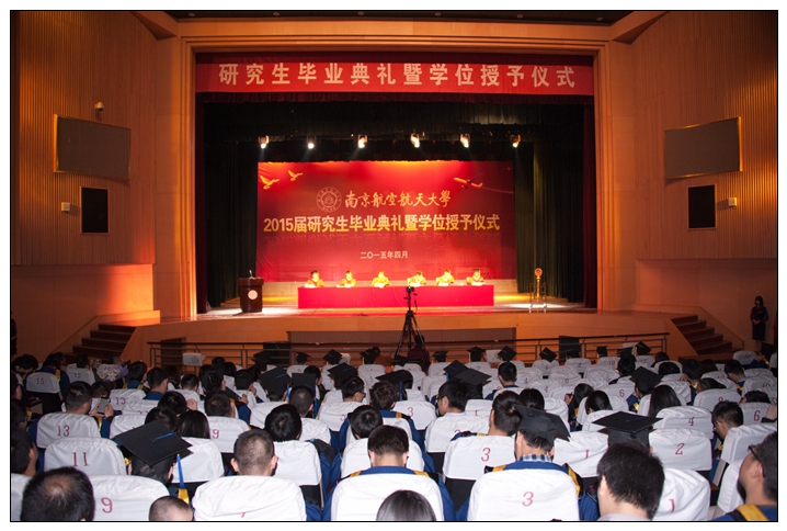 4月14日下午, 我校2015届研究生毕业典礼暨学位授予仪式在明故宫校区新大学生活动中心隆重举行。校长聂宏、纪委书记吴庆文、副校长王永亮、副校长黄志球、校长助理熊克、校长助理黄炳辉出席了典礼。副校长、研究生院院长王永亮主持典礼,校学位评定委员会委员、机关部处和学院领导、导师代表及1000余名毕业研究生参加了毕业典礼暨学位授予仪式。 典礼上,吴庆文宣读《2015届优秀毕业研究生表彰决定》和《关于表彰2015年校优秀硕士学位论文的决定》,主席台全体校领导为获奖研究生颁奖。毕业生代表雷芸同学和研究生导师代表、经济与管理学院院长周德群教授分别发言。周德群教授发言中深情地为毕业生的努力和成长点赞,鼓励同学们在未来的人生路上保持独立思考、带着人文情怀前行,热情洋溢的祝福赢得毕业生阵阵掌声。