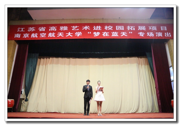 4月26日,作为2015年度江苏省高雅艺术进校园活动拓展项目,“梦在蓝天”南京航空航天大学专场演出在江苏省海安高级中学体艺馆举行。演出由我校大学生文化艺术指导委员会秘书长杨莉莉教授担任艺术总监,江苏省教育厅高雅艺术进校园活动督导组专家、海安高级中学校领导、南京航空航天大学学生处副处长许爱华、南京师范大学丁小兵以及该校1500多名师生到场观看了演出。 当天中午,我校大学生艺术团一行历经三个小时的车程到达海安高级中学,简单午餐后便立即投入到走台、化妆等演出准备工作中。担任舞蹈《绣》领舞的衡昕同学当天因为身体不适,肚子疼得满头是汗,但是吃了止疼药后仍坚持完成了排练合成;新加入艺术团的夏时俊同学因为要表演新节目,在其他同学走台结束休息的时候,仍自己要求在舞台上重复几遍。同学们心中都想着要以最好的状态和表演为海安学子展示南航人的风采。 演出16:30正式开始,体艺馆座无虚席。本次演出的节目中既有《问天梦》这样刚刚获得全国大学生艺术展演舞蹈比赛一等奖的原创作品,也有《春芽儿》、《绣红旗》、《亲爱的你还好吗》等一批获得省级专业竞赛优异成绩的作品,更有《联舞》等新排演的剧目,《青春飞扬》、《我爱祖国的蓝天》、《承诺》等剧目更是凸显了我校的行业背景和专业特色,体现了南航师生钻研拼搏、积极向上的精神。当海安高级中学的同学们听说演员中有很多都是来自飞行器设计、机械工程、经济与管理等非艺术类专业的学生时,都报以了热烈掌声和赞叹声。 本次演出是我校大学生艺术团2015年的第一场高雅艺术进校园演出活动,接下来将于五月份相继走进江都中学和南京邮电大学。 ![]() ![]() ![]() ![]() ![]() ![]() |