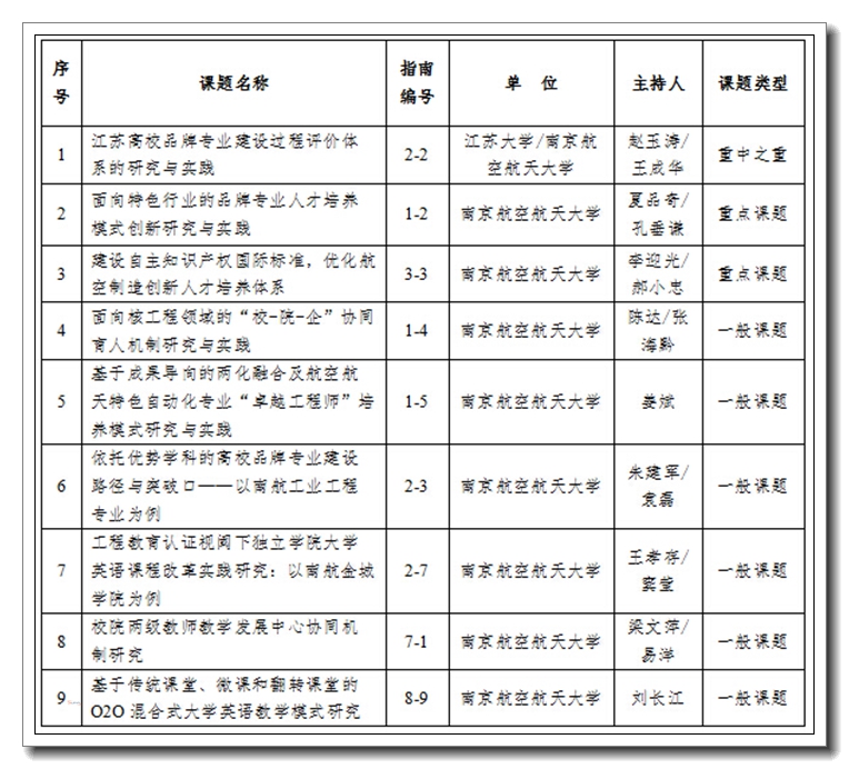 近日,江苏省教育厅公布了2015年省高等教育教改研究立项课题评选结果,我校有9项课题获得立项,其中重中之重课题1项,重点课题2项,一般课题6项。此次评选中,全省共确定2015年省高等教育教改研究立项课题639项(重中之重课题19项,重点课题112项,一般课题508项)。 我校一直重视教育教学改革工作。在此申报中,学校精心组织,广大教师踊跃申报,各学院积极推荐,使得一批高水平教育教改课题脱颖而出。此次优异成绩的取得,充分显示了我校近年来在人才培养改革、专业建设、师资队伍建设以及教学管理等方面的投入已取得了明显成效,也为“十三五”期间进一步提升教育教学水平、促进优秀教学成果的形成打下了良好基础。 ![]() |