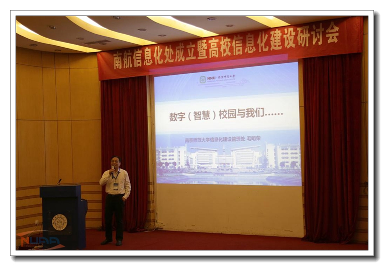 2015年10月10日上午,我校信息化处成立暨高校信息化建设研讨会在明故宫校区科学馆举行。校长聂宏教授、副校长黄志球教授,全国高等教育学会信息化分会副理事长邸德海教授、江苏省计算机学会秘书长杨献春教授、江苏省高校网络技术专业委员会理事长陈俊良教授、江苏省高校网络技术专业委员会秘书长毛明荣教授,以及工信部直属高校及江苏省内高校信息化建设机构的主要负责人,学校相关机关部处和学院负责人,信息化处(信息化技术中心)全体教职工和部分学生代表参加了会议。