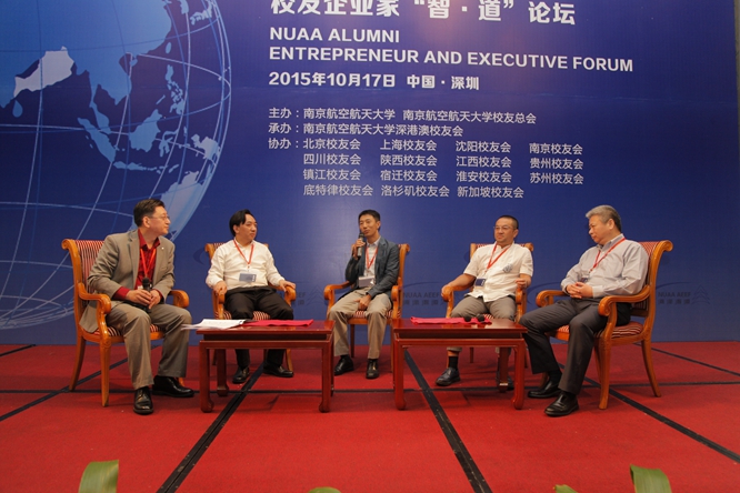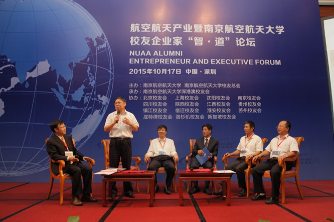2015年10月17日至18日,在建校63周年来临之际,南京航空航天大学首届校友企业家“智·道”论坛在深圳举行。中国商用飞机有限责任公司副总经理史坚忠、深圳市副市长吴以环、南京航空航天大学校长聂宏为论坛揭幕,校党委副书记、副校长陈夏初主持论坛开幕式,300余名各地校友出席论坛。