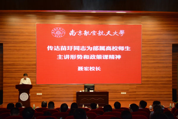 就贯彻落实苗圩部长授课讲话精神,聂宏提出要求:一是要提高政治站位,继续深入学习领会习近平新时代中国特色社会主义思想和党的十九大精神,尤其是重点学习习近平“两个强国”战略思想,不断提高落实新思想的思想自觉和行动自觉。二是要进一步解放思想,通过教育思想大讨论,总结凝练新时代南航发展的办学理念和人才培养目标,通过深入推进校内综合改革,不断推进现代大学治理体系和治理能力建设,凝心聚力,建设特色鲜明世界一流大学。三是要坚持立德树人根本任务,牢固树立人才培养核心地位,强化担当作为,强化教育教学改革,培养中国特色社会主义事业的合格建设者和可靠接班人。