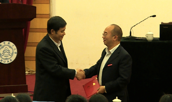 会议首先举行兼职教授聘任仪式,聘任冯刚教授为我校马克思主义学院兼职教授,校长聂宏为冯刚颁发聘任证书,并佩戴南京航空航天大学校徽。