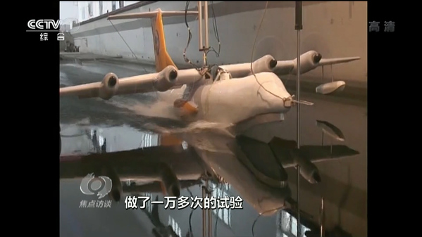 黄领才说:“水的阻力大家都知道,密度是空气大约800倍一个关系,在这样一个条件下,要想把速度提高,飞机首先阻力特性要好,阻力要小。”