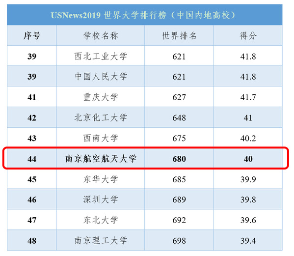 此外,USNews还发布了2019世界大学排行榜,来自全球70多个国家的1250所知名大学入围,其中中国高校161所。其中内地高校130所,我校以40的总分在内地高校中排名44位(较上年上升6位),世界排名680位(较上年上升68位)。