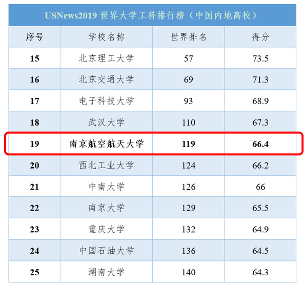 今年的全球大学工科排名前600名中,中国高校共有98所上榜。其中中国内地高校共计有79所,我校以66.4的总分在内地高校中排名19位(较上年上升6位),世界排名119位(较上年上升38位)。