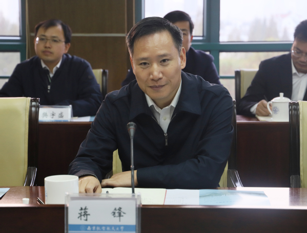 11月8日,溧阳市党政代表团一行11人来校,就推进天目湖校区规划与建设工作进行座谈交流,我校党委书记郑永安、校长聂宏、副校长宋迎东,溧阳市委书记蒋锋、市长徐华勤、市人大常委会主任潘云芳、市政协主席狄立新、常务副市长周卫中等出席座谈会。